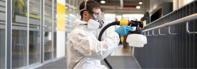 Spuittechnologie maak een uitgebreide behandeling van oppervlakken met een desinfectiemiddel mogelijk. Hierdoor kan de aanwezigheid van bacteriën, virussen en schimmels verminderd worden. Desinfectiemiddelen in vloeibare vorm, die op zijn minst virus dodend zijn, zijn geschikt voor een applicatie op oppervlakken via het verspuiten.